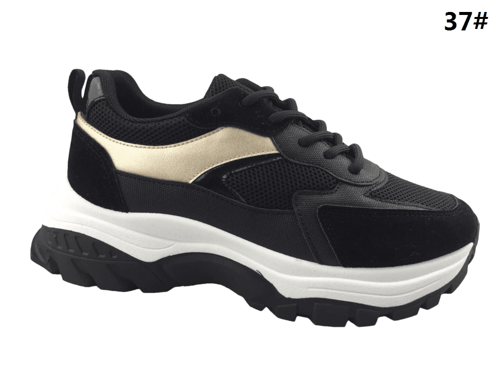 CODE :PCL220109-S269 COLOUR : BLACK+GOLD UPPER:PU+TEXTILE OUTSOLE:PVC SIZE RANGE:36-41 suitable for the season: winter Spring Autumn Summer