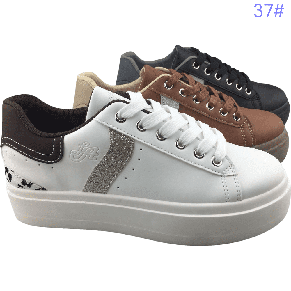 CODE :PCL22105-S161 COLOUR : BLACK WHITE BROWN UPPER:PU OUTSOLE:PVC SIZE RANGE:36-41 suitable for the season: winter Spring Autumn Summer